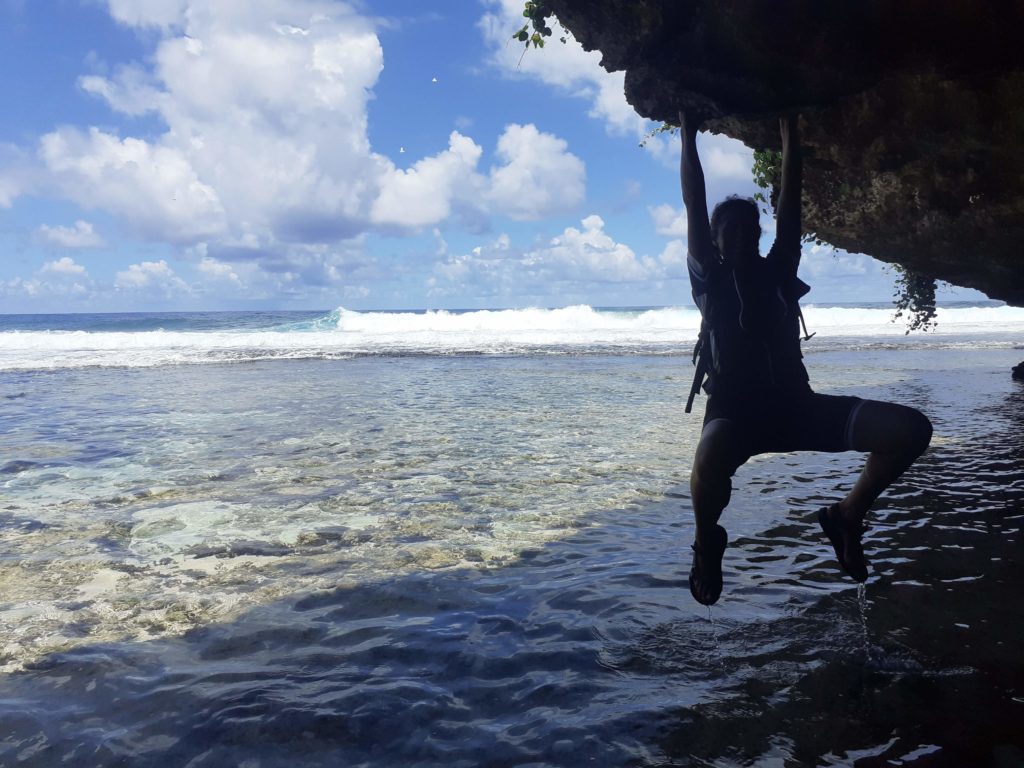 The first day we met Terry who we knew from Tubuai. He showed us a cave hidden deep in the forest and together we crawled through a tiny opening to explore the hidden world of stalactites and stalagmites. Terry had a plane to catch so we left him and continued around the island.